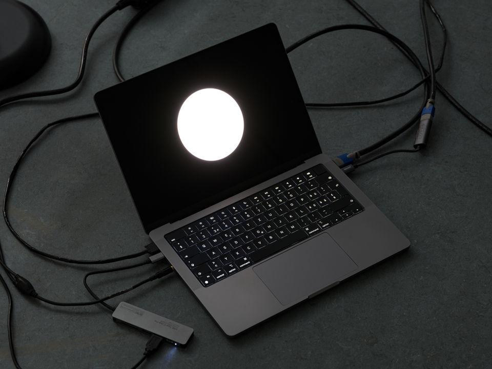 Programmed video, sound and light script, 20 IKEA TÅGARP lamps, 3 BOTEX DMX-Switchpacks, disco ball, loop